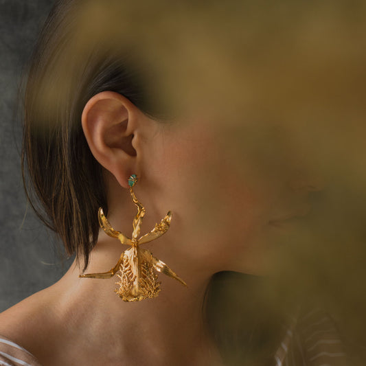 Aretes Orquidea Brassia Hoja Pino Sauco Esmeraldas