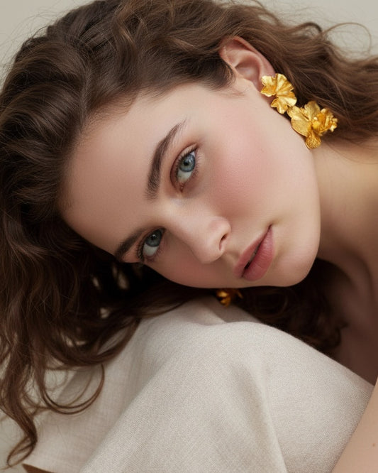 Aretes Orquidea Lluvia de Cereza Hoja Hiedra Esmeralda